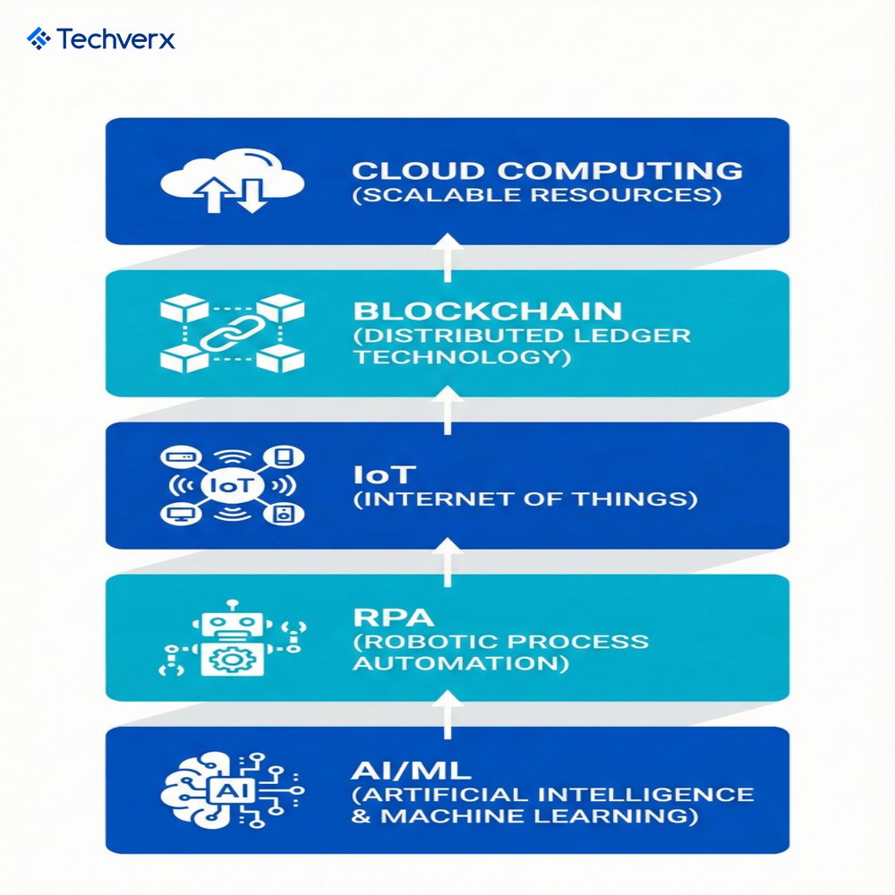 Hyperautomation combines Robotic Process Automation (RPA), Artificial Intelligence (AI), Machine Learning (ML), Internet of Things (IoT), and advanced analytics into a unified, intelligent system. Unlike traditional automation that handles repetitive tasks, hyperautomation creates “digital workers” that process unstructured data, understand context, and make decisions previously requiring human expertise.